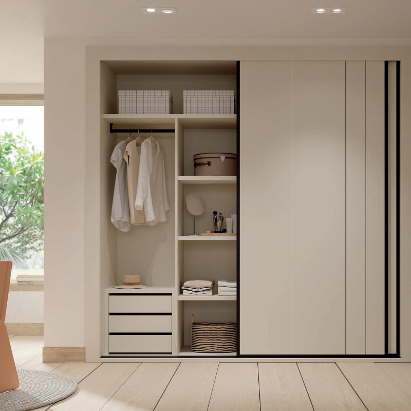 Armarios a medida de puertas correderas, deslizan silenciosa y suavemente con sistema de freno, auto-cierre o imán.